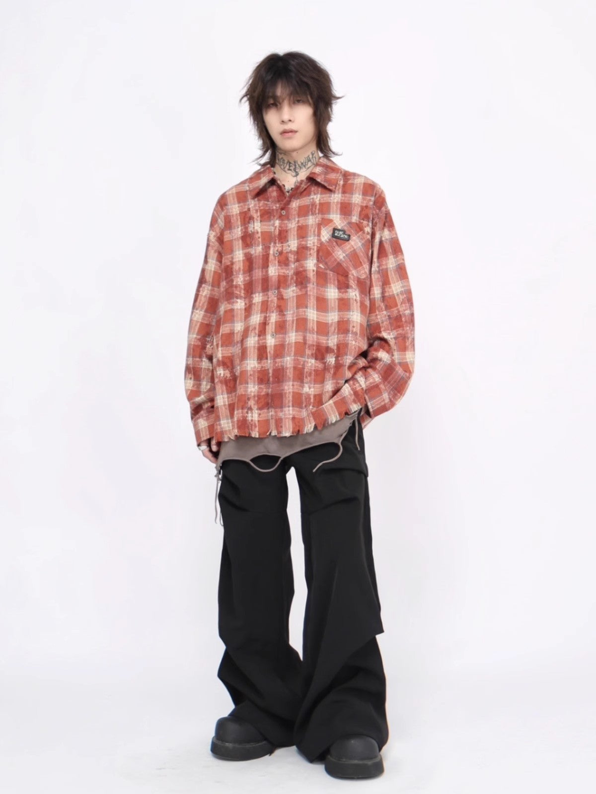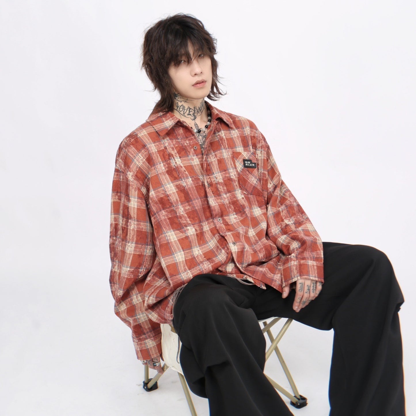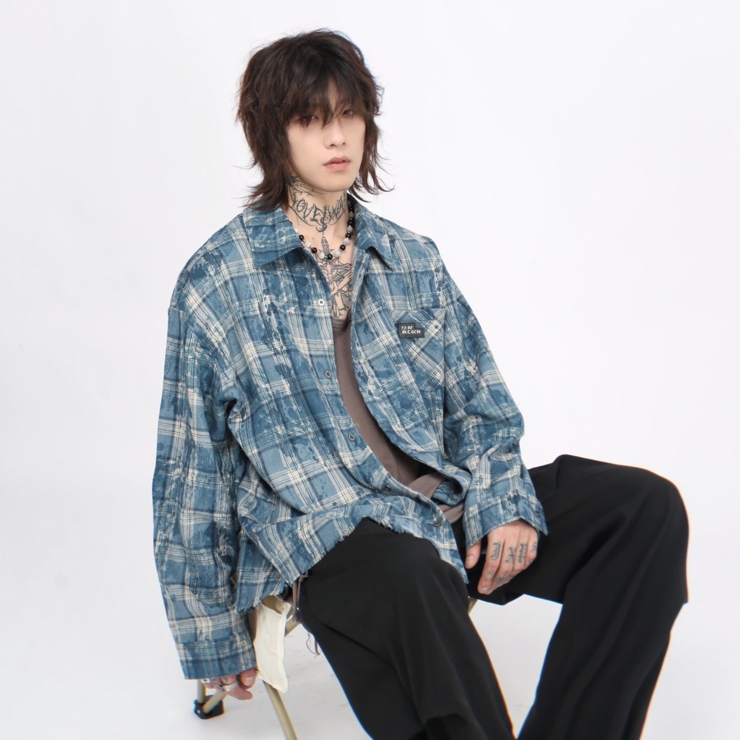 Label Design Tie Dyed Plaid Oversize Shirt WN6956