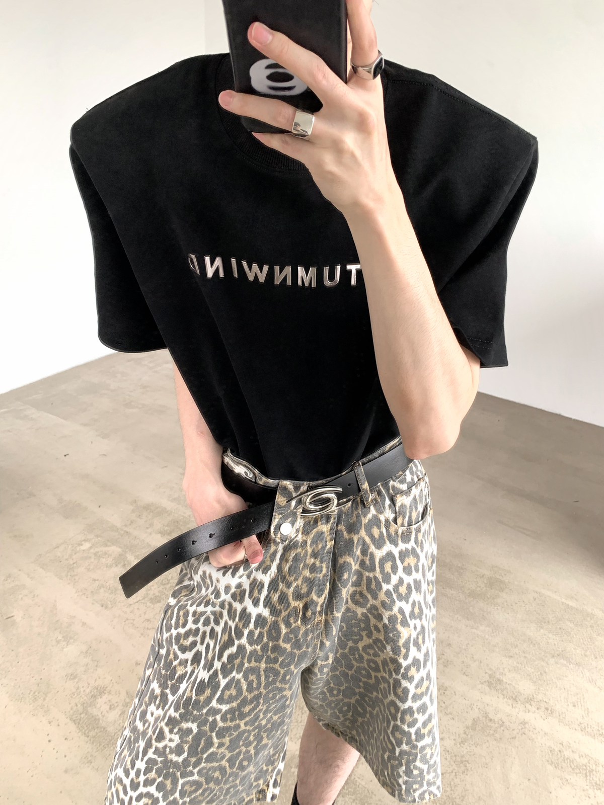 Metal Letter Design Shoulder Pads Short Sleeve T-shirt WN7059