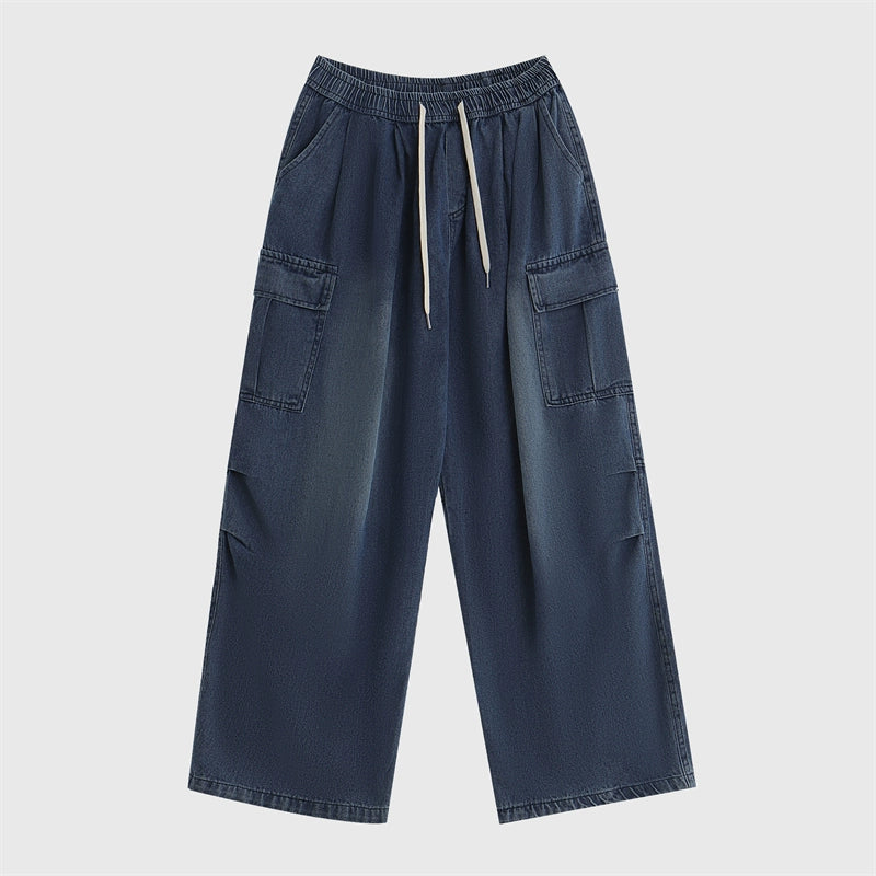 Draw Cord Wide-Leg Straight Cargo Denim Jeans WN7181
