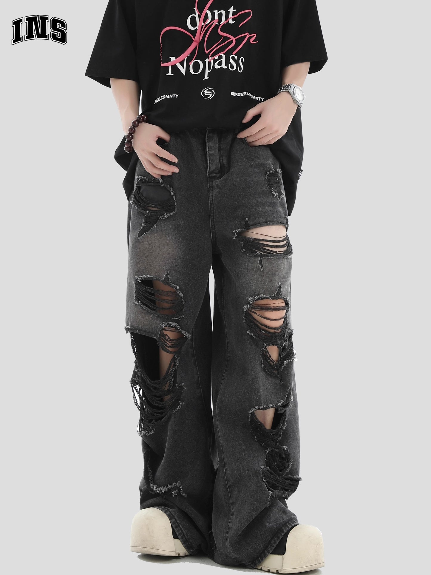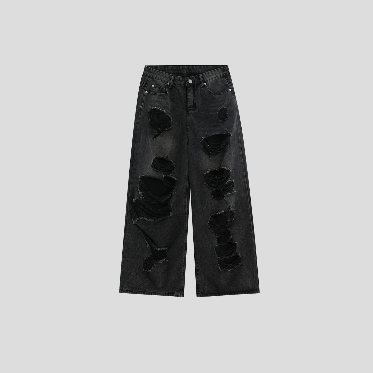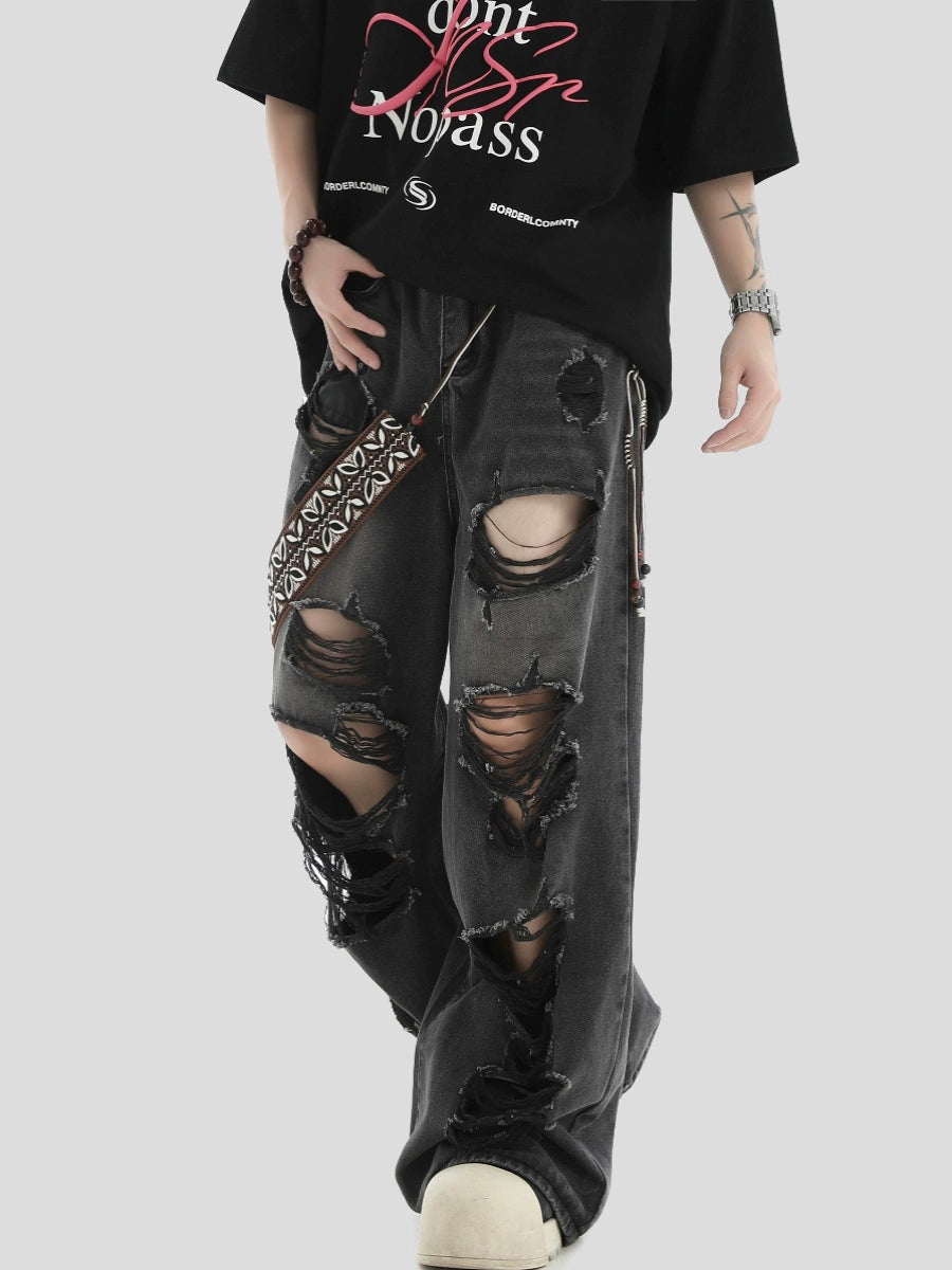 Damage Wide-Leg Straight Denim Jeans WN7203