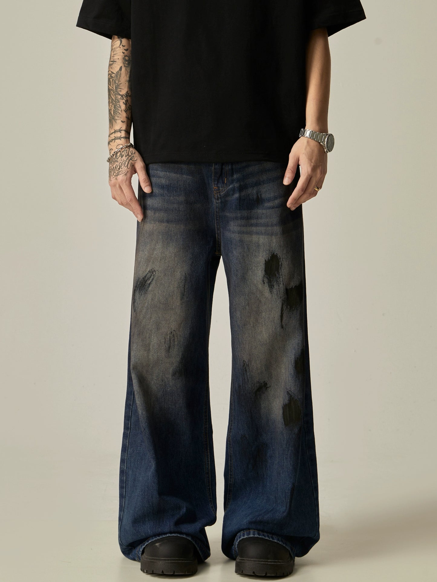 Splash Ink Wide-Leg Straight Denim Jeans WN7760