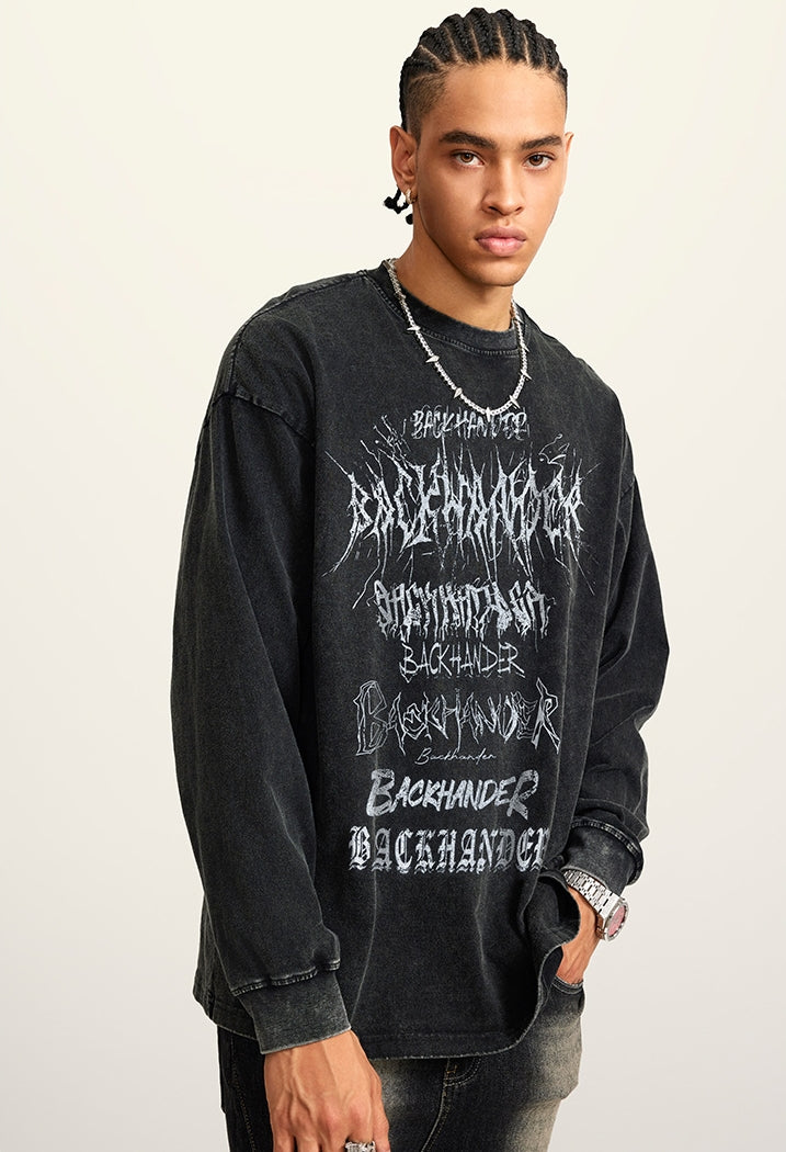 Water Washed Print Long Sleeve T-Shirt WN7882