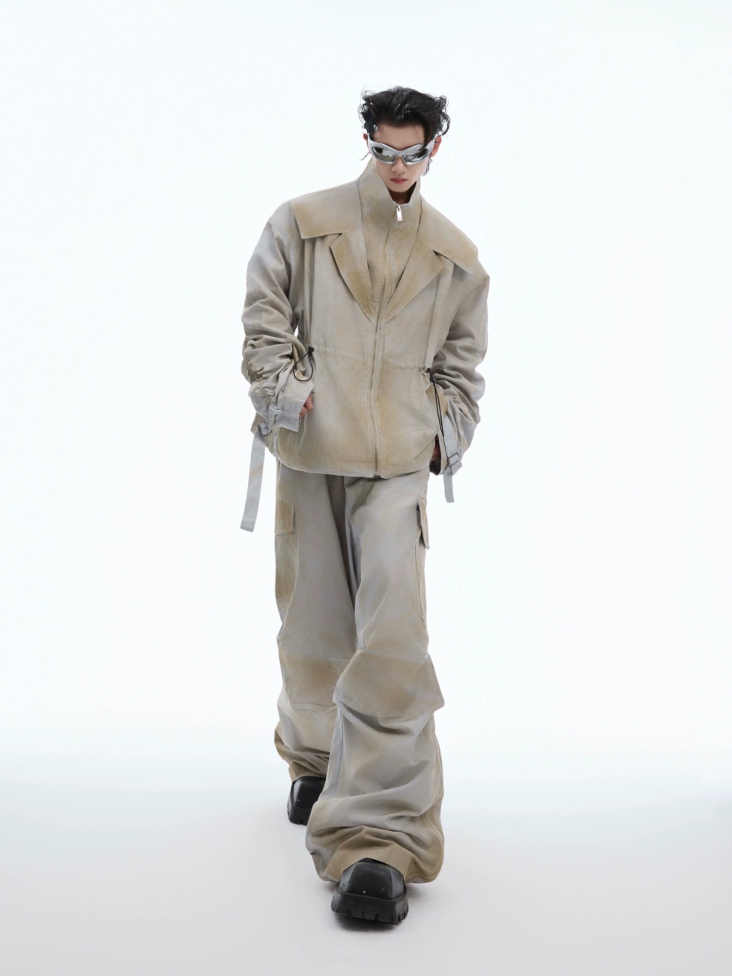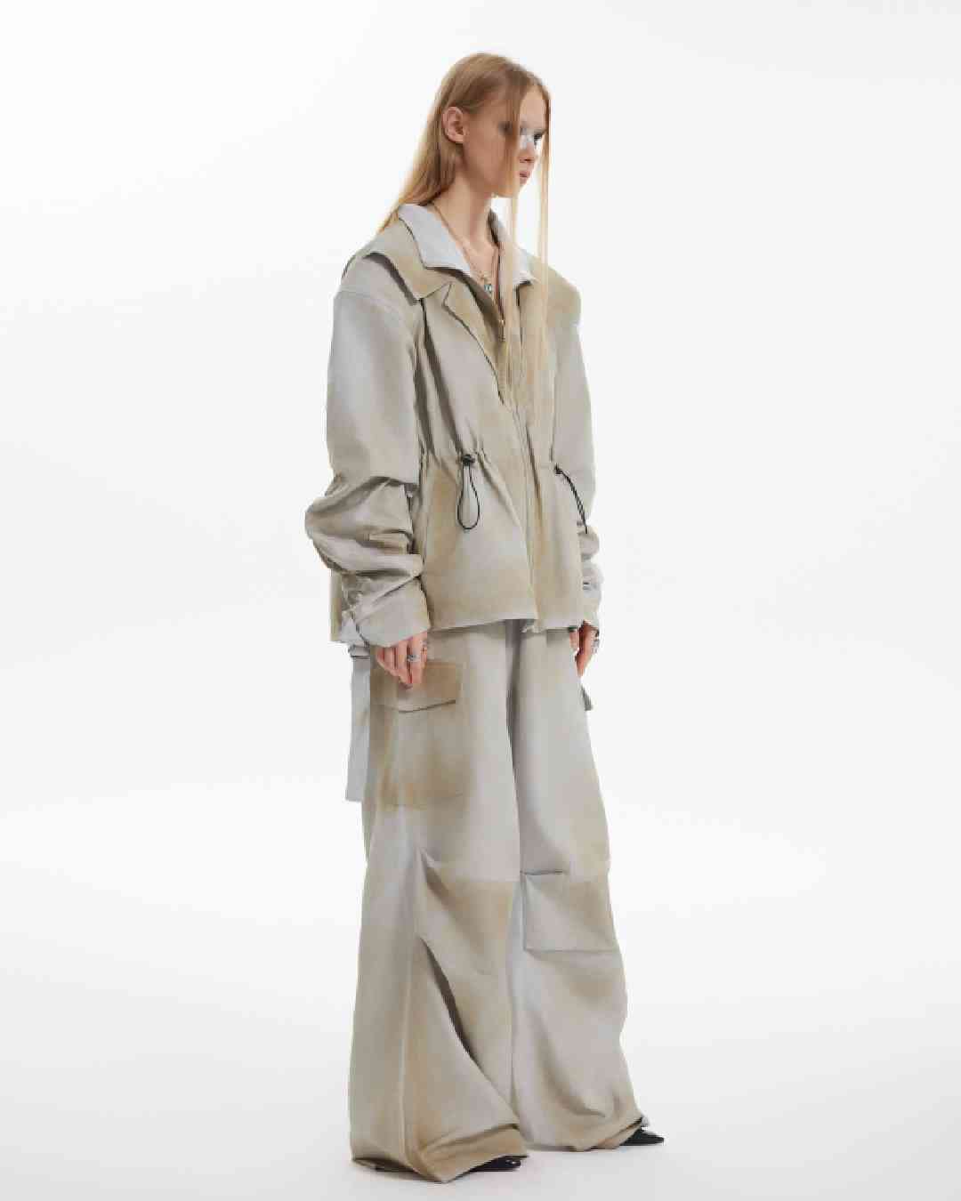 Fake Layered Design Sporty Jacket & Wide Leg Pants Setup WN8674