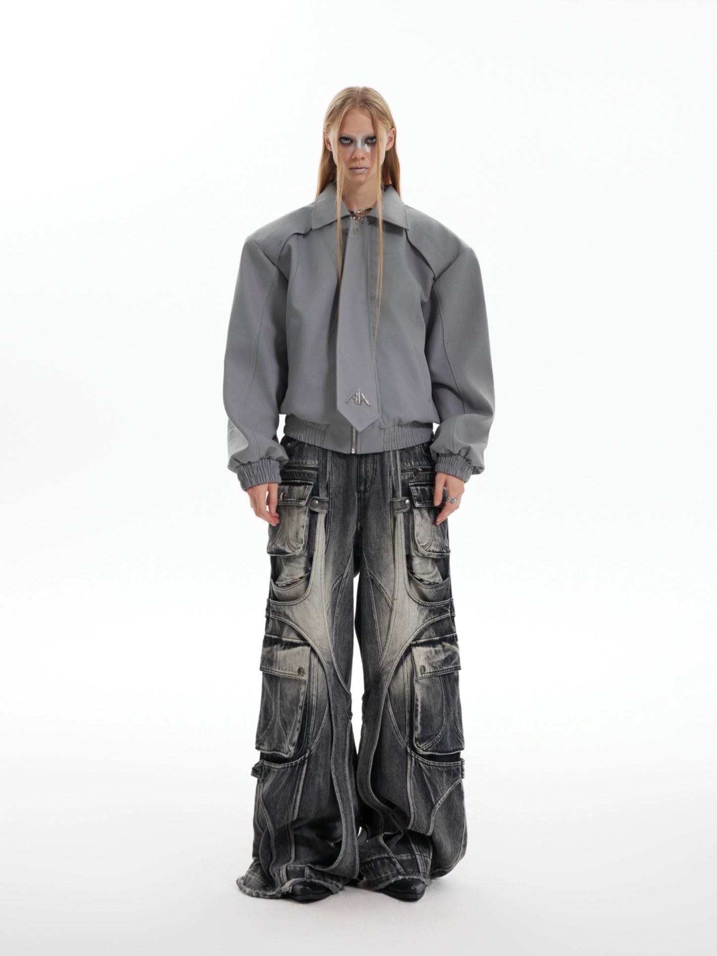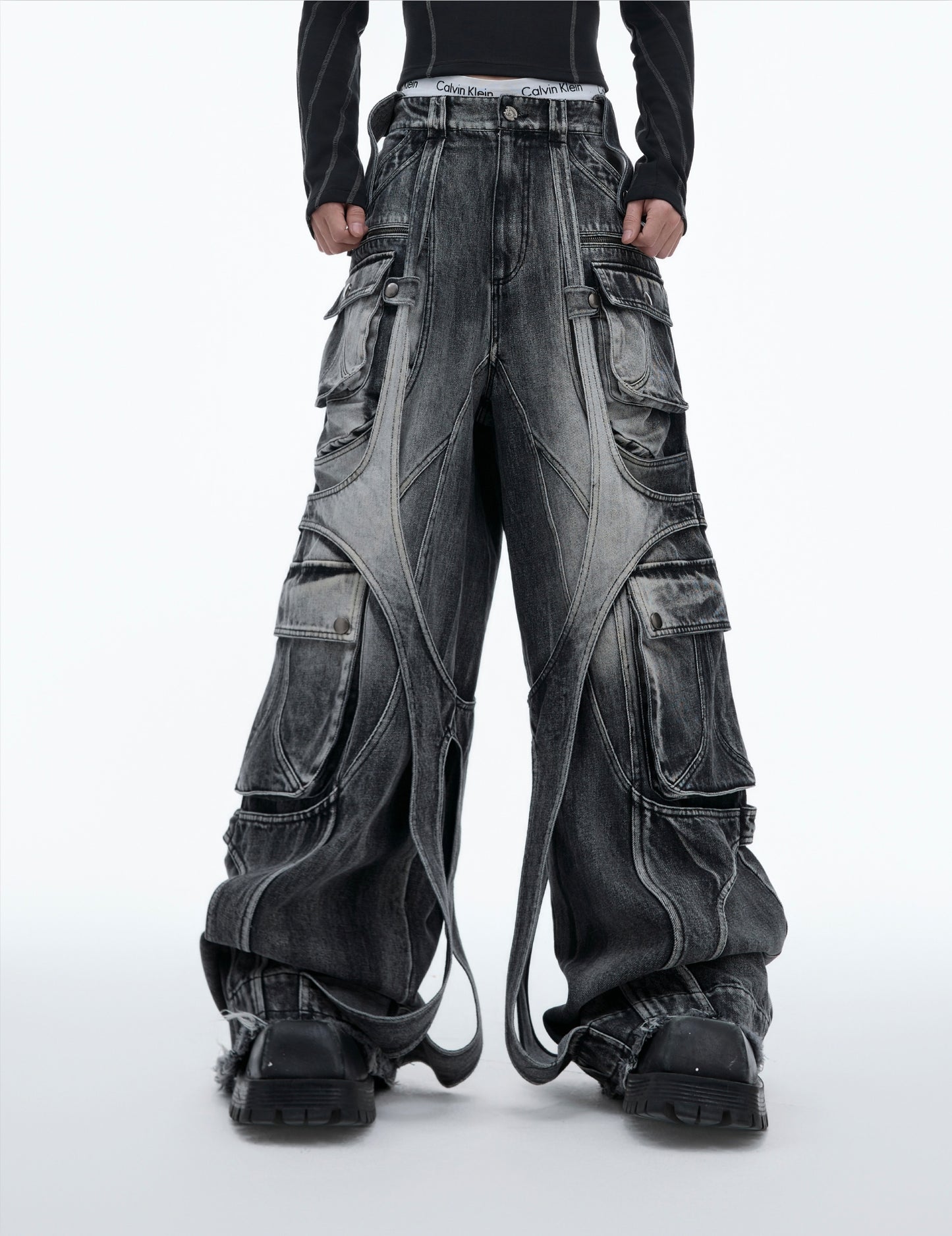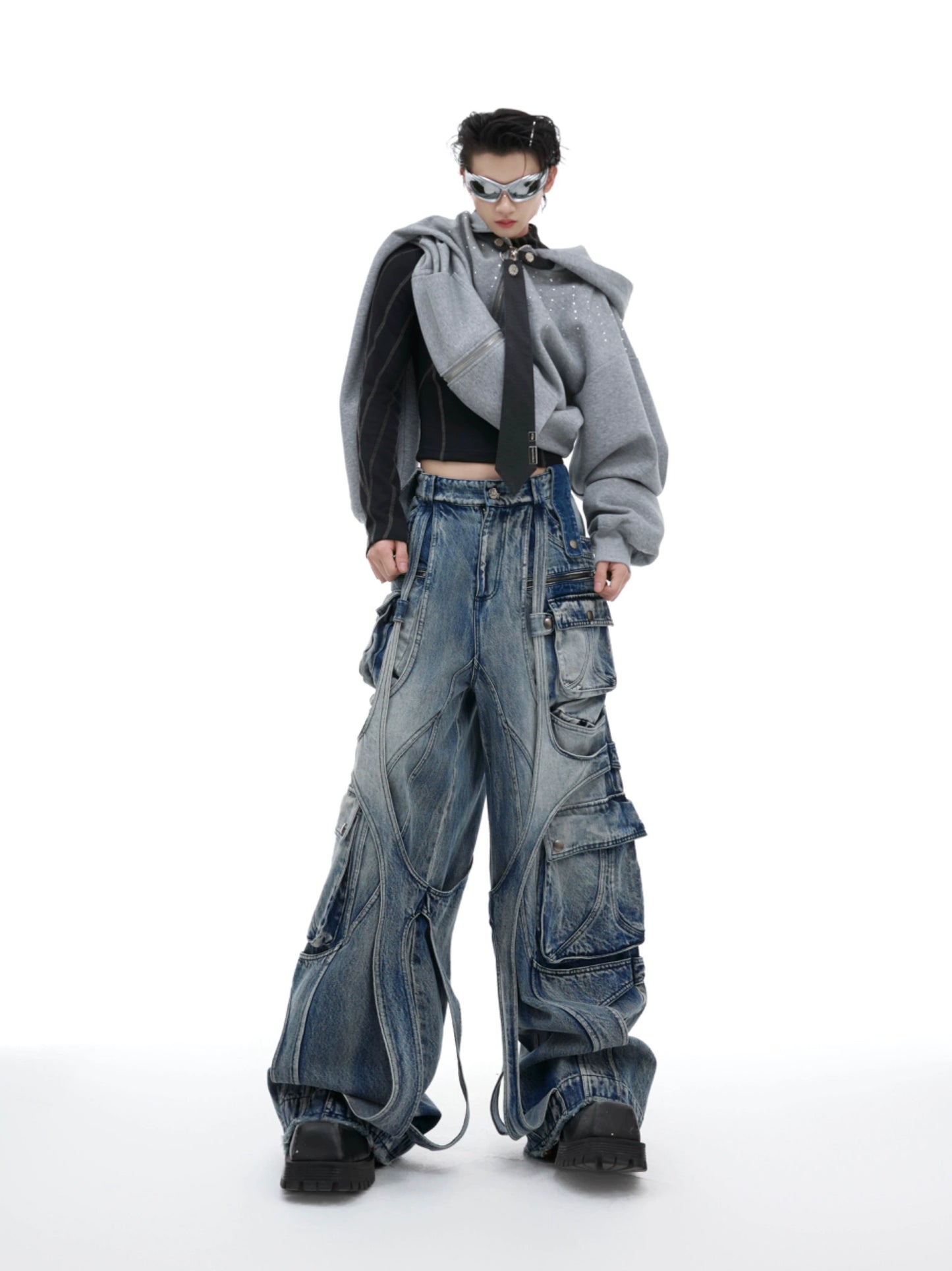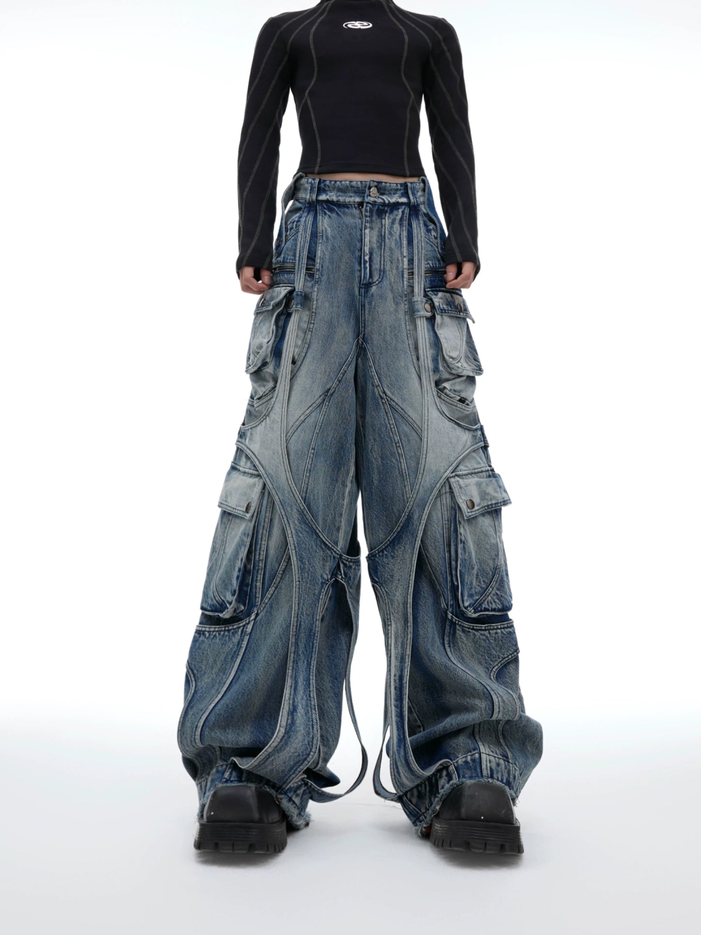 Multi Pocket Heavyweight Wide Leg Cargo Denim Jeans WN8679