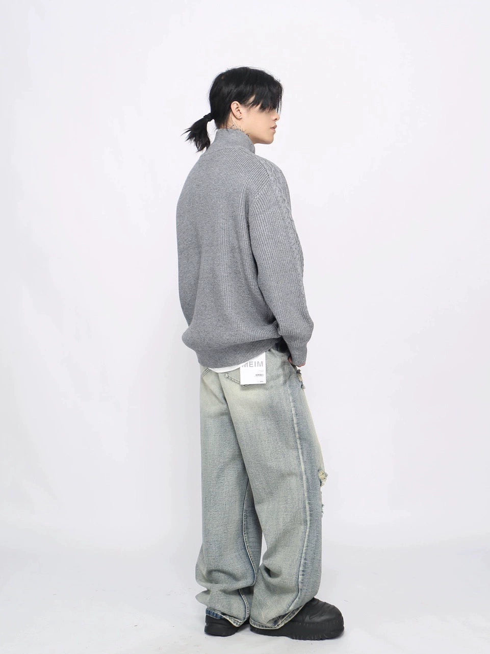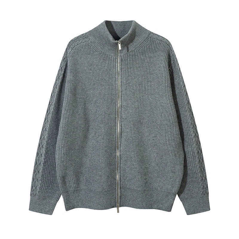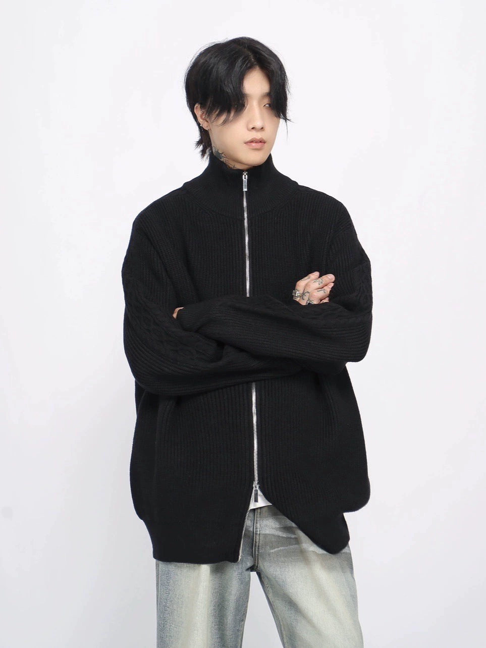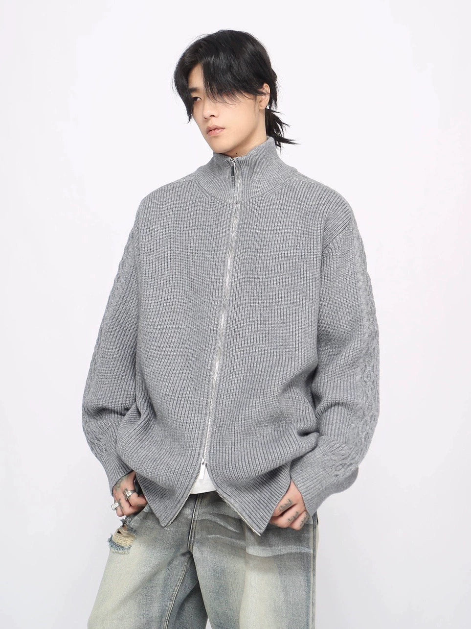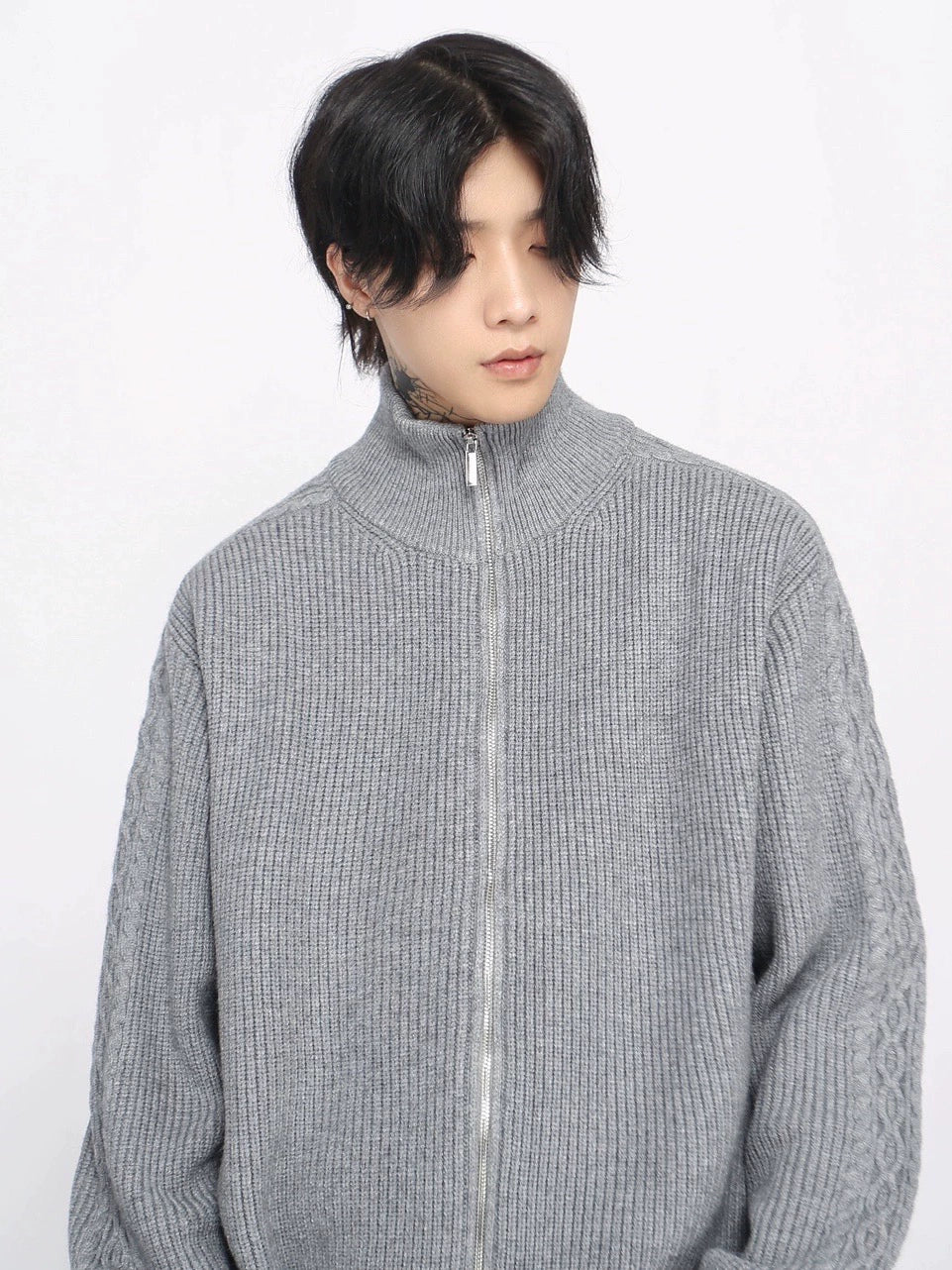 Heavyweigh Stand Neck Zipper Knit Cardigan WN8732