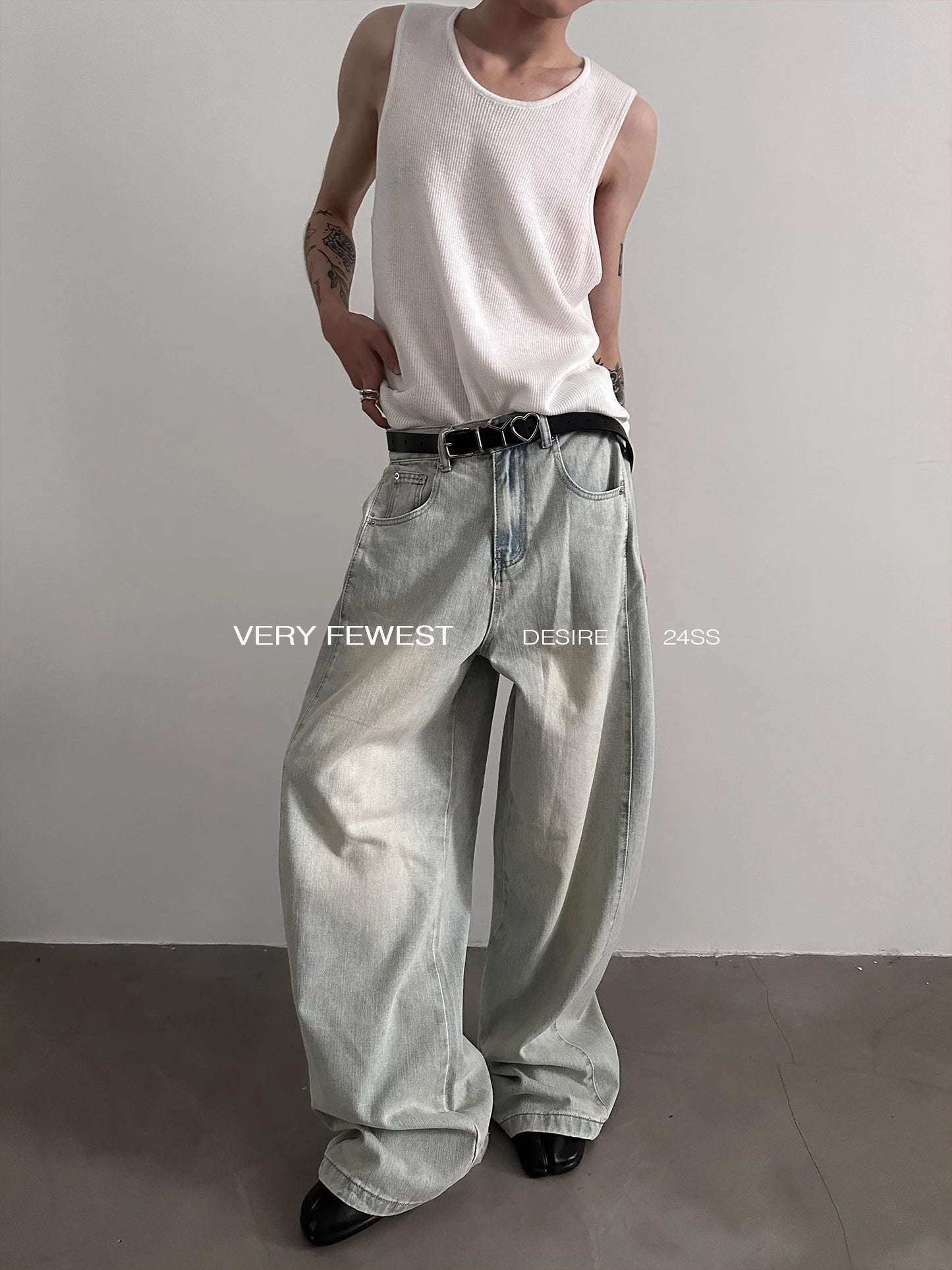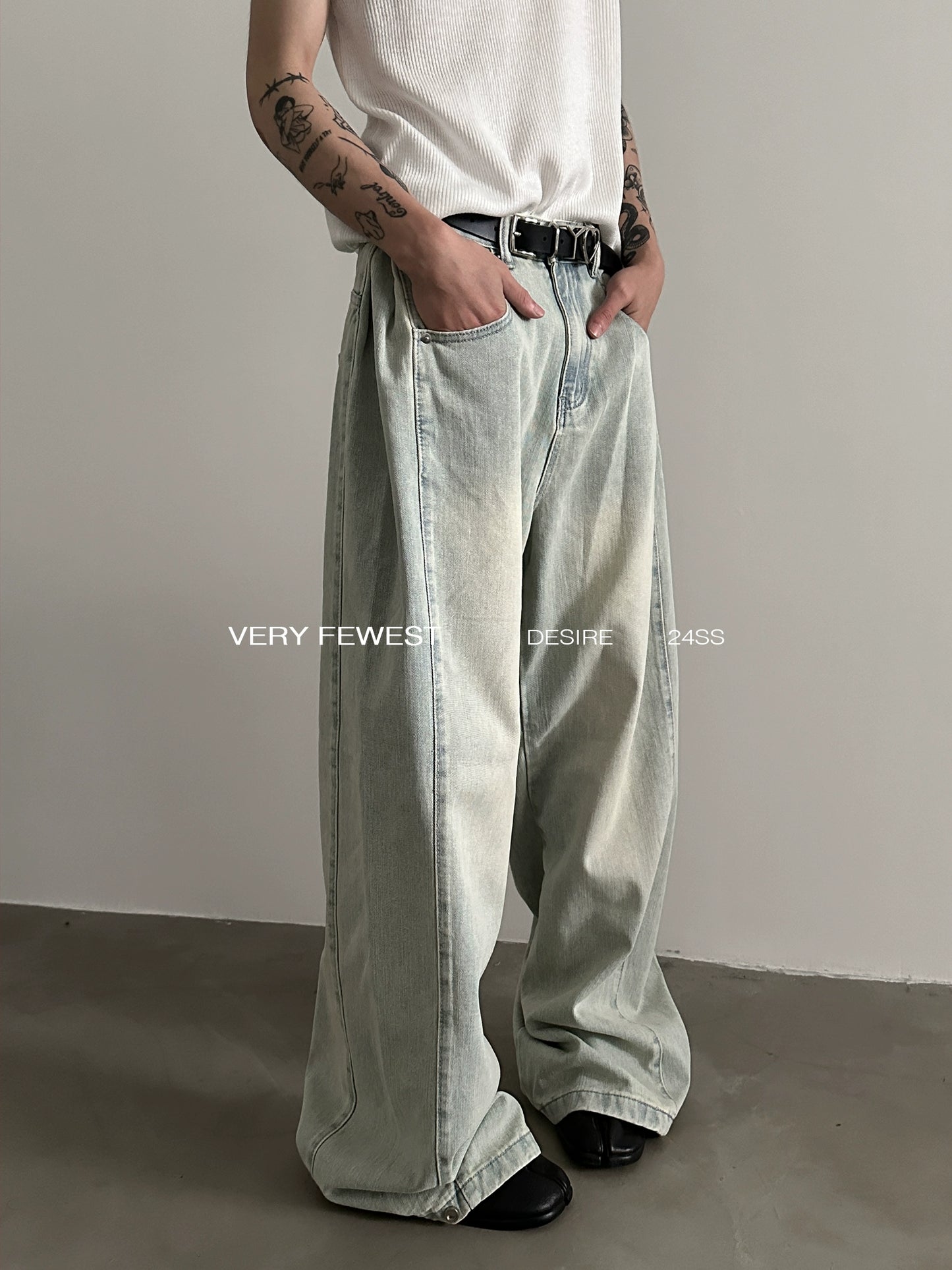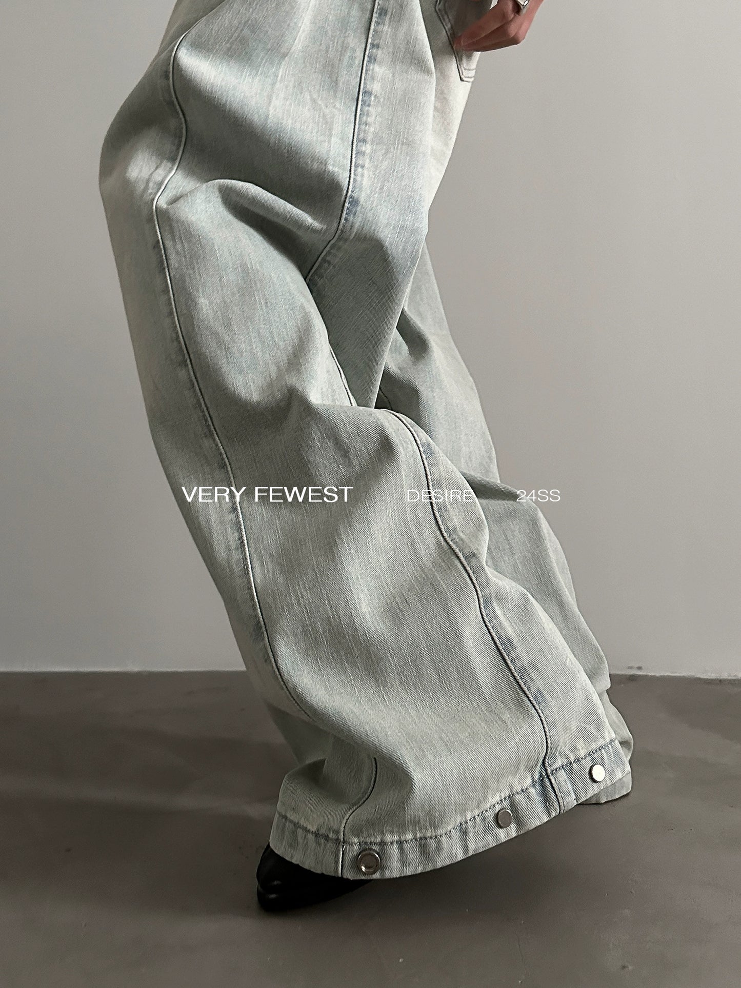 Metal Button Washed Wide Leg Denim Jeans WN8879
