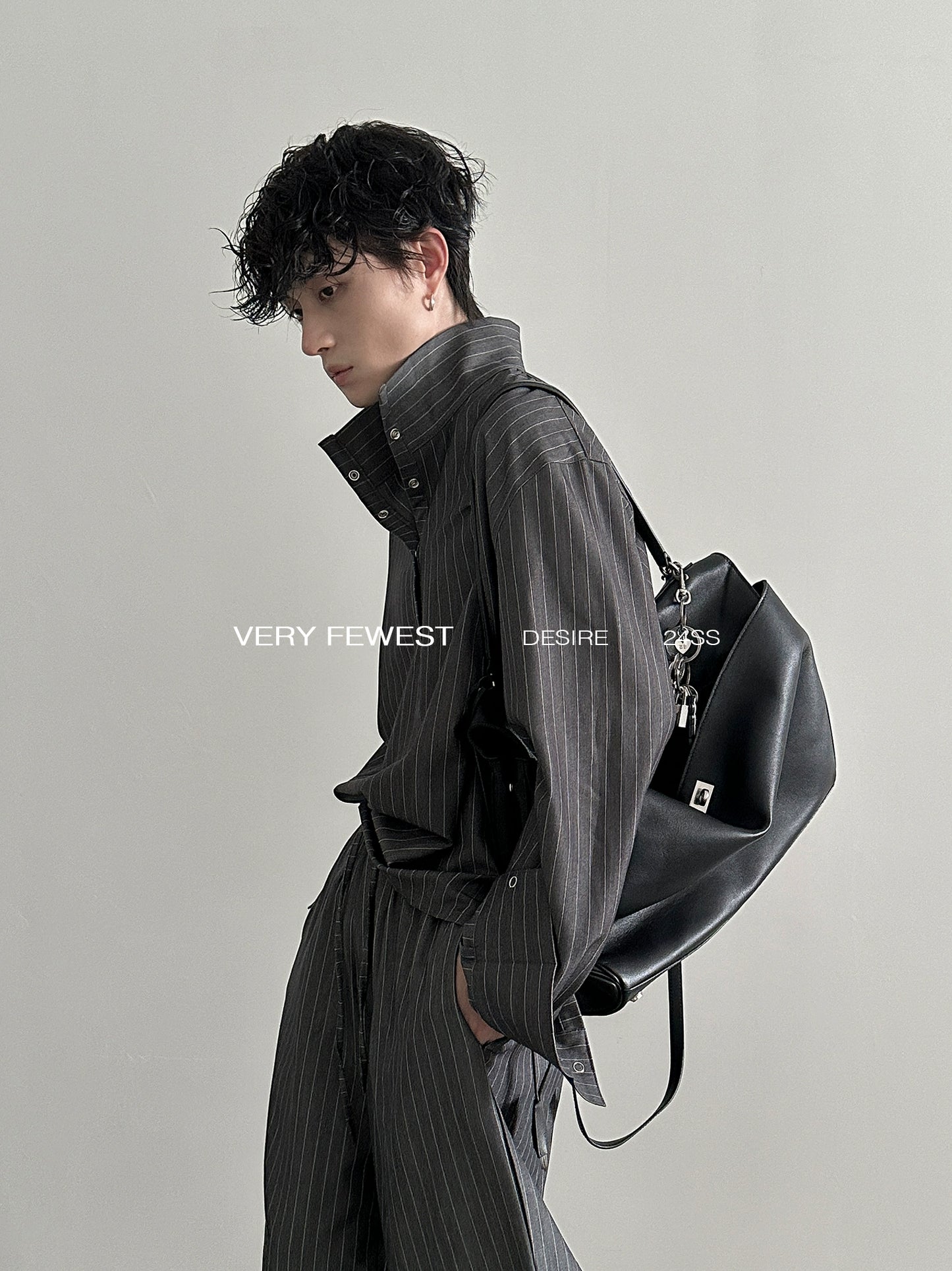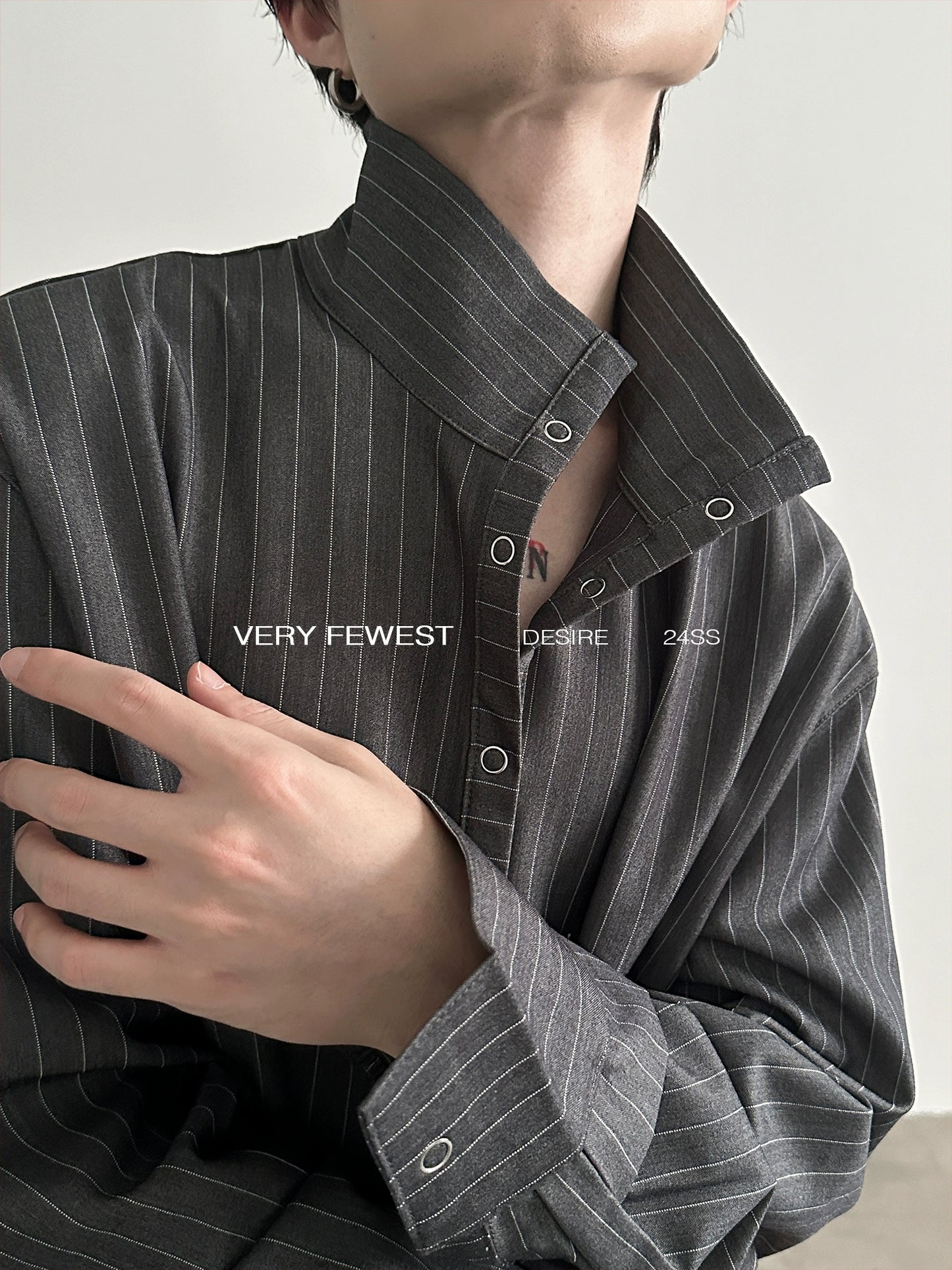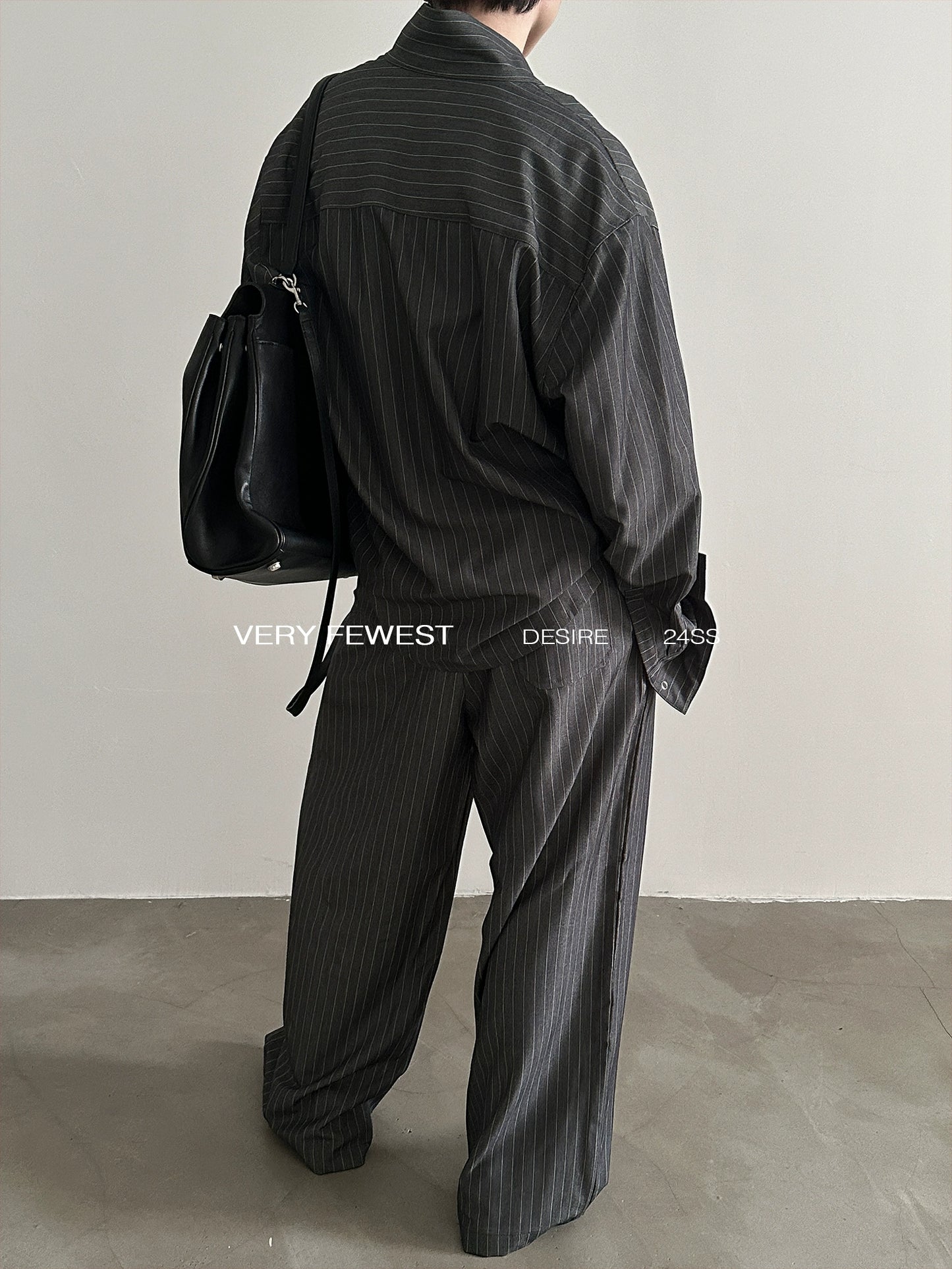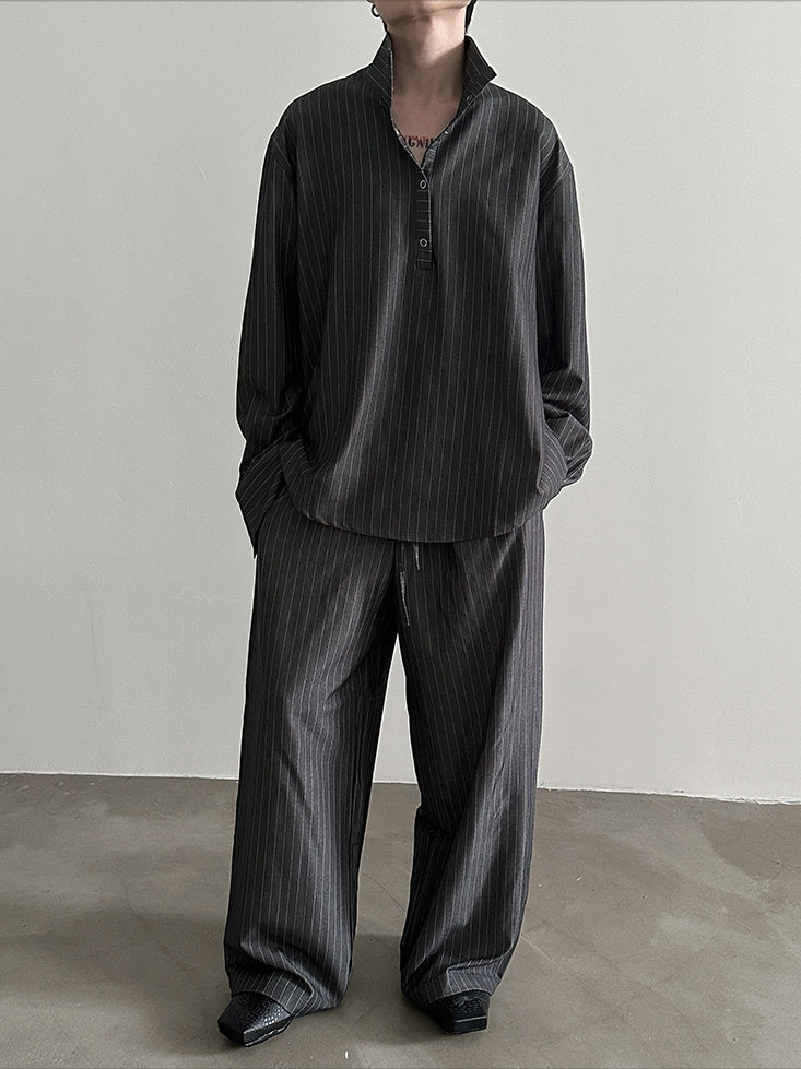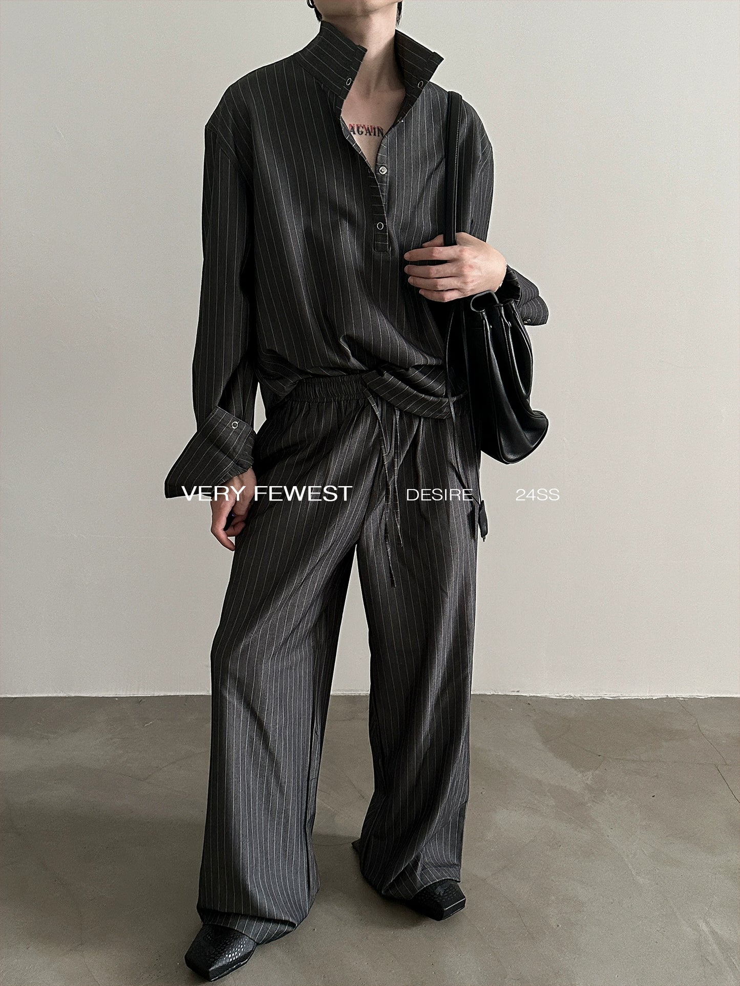 Stripe Stand-neck Shirt & Wide-Leg Straight Pants Setup WN8904