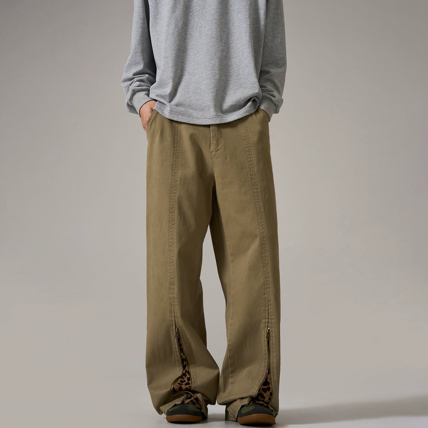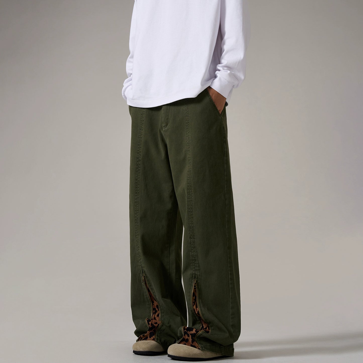 Leopard Print Spliced Straight Leg Pants WN8995