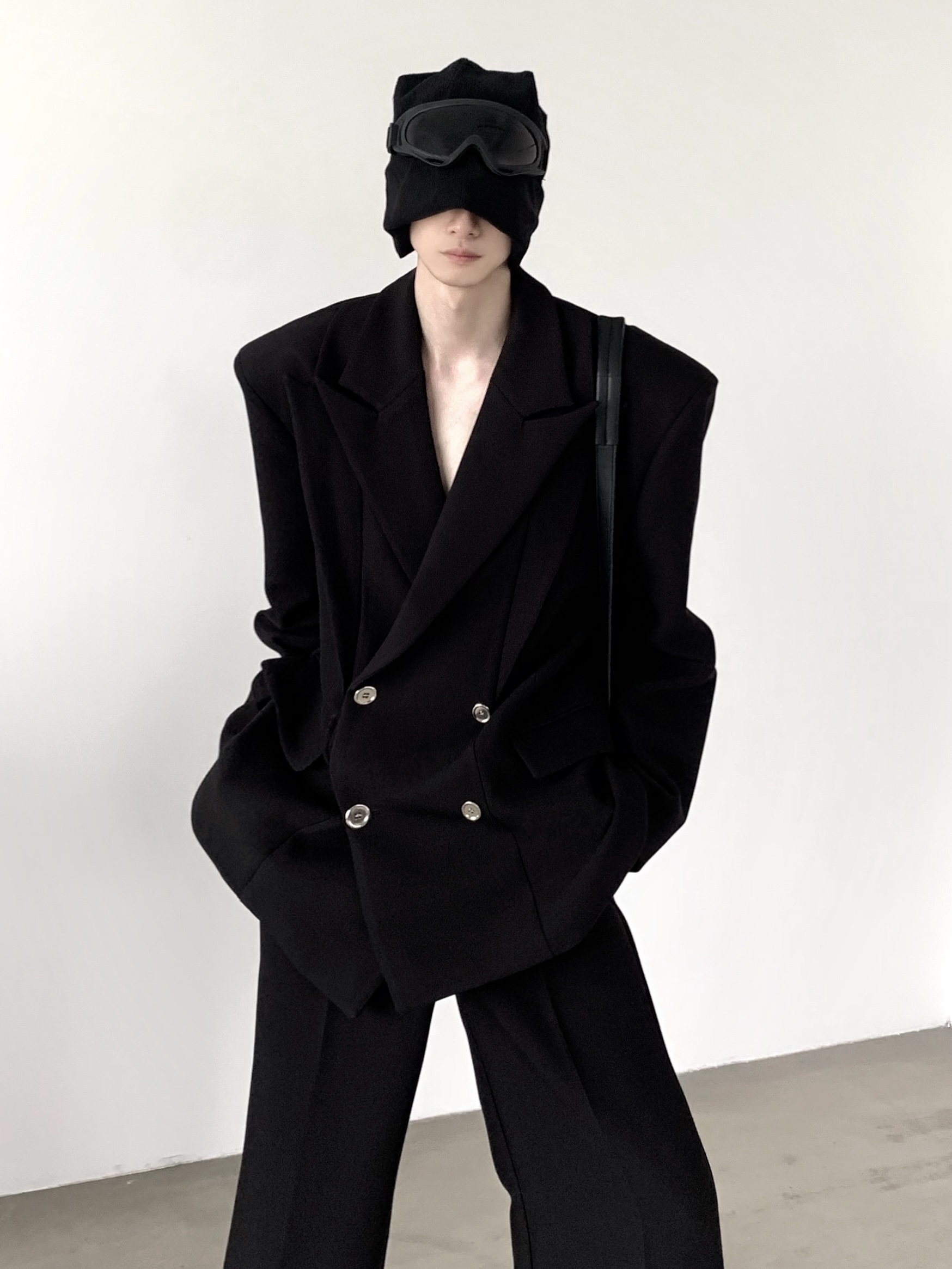 Shoulder Pad Double Collar Tailored Jacket & Wide-Leg Straight Trousers Setup WN9192
