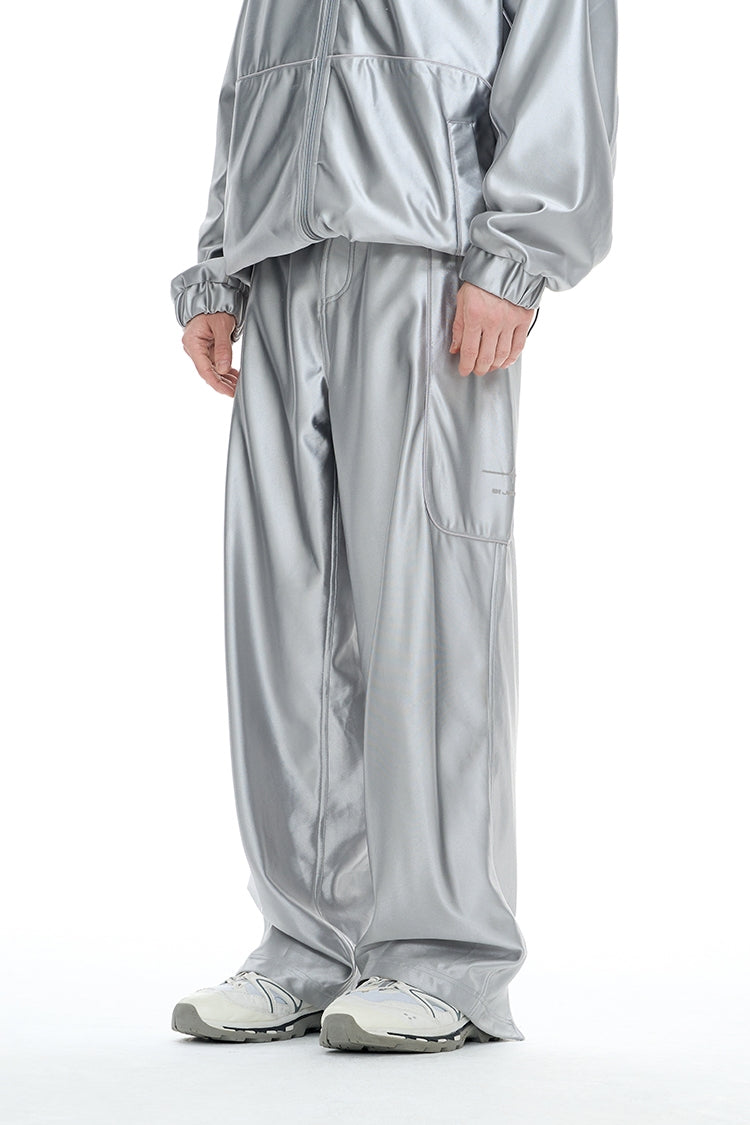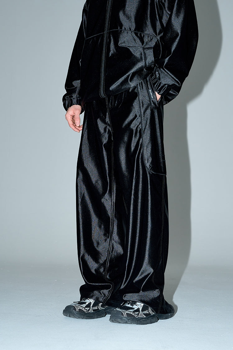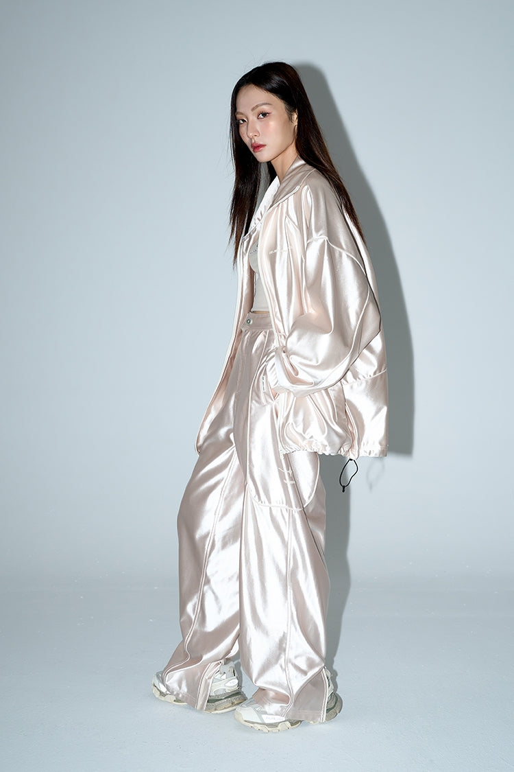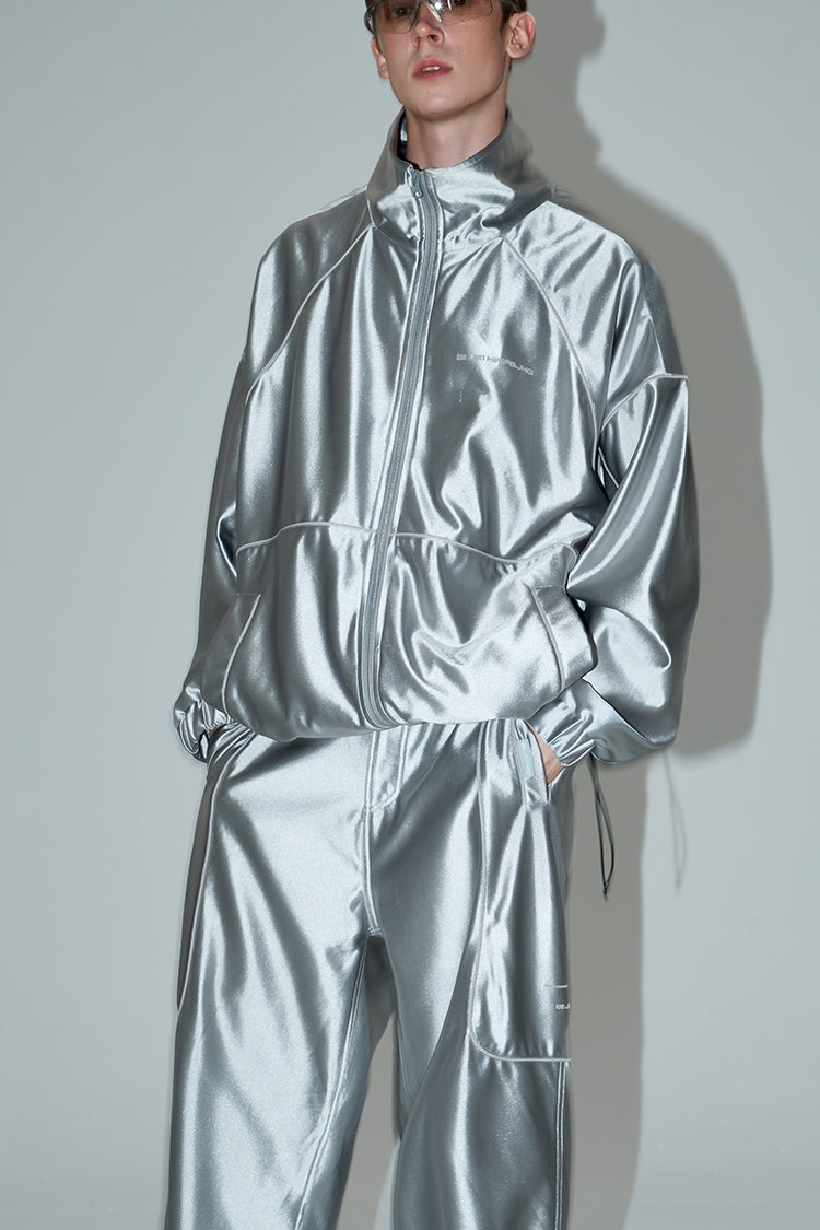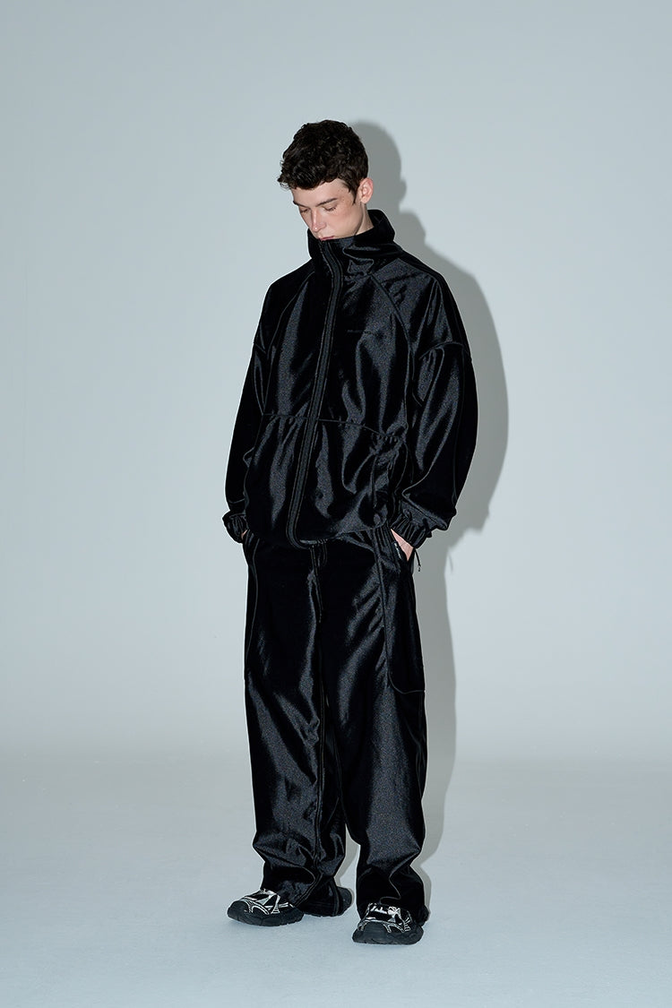 Stand Neck Sporty Jacket & Wide-leg Sporty Pants Setup WN9761